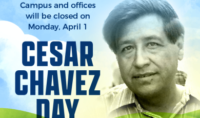In honor of Cesar Chavez Day, Ventura College and Ventura College East campuses and offices will be closed on Monday, April 1.