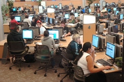 The computing center is located in the LRC (Library and Learning Resource Center) building, directly below the campus library, and occupying most of the building's first floor. There are 367 computers at this location of the Learning Center in the area called the "B.E.A.C.H." (which stands for "Best Educational Access to Computers and Help").