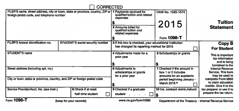 - If charges were incurred in previous years for classes taken in the current calendar year, the expenses are not reflected in the current tax year. When reviewing your records, please take into consideration actual registration dates (e.g. if you registered for the Spring term (which starts in January) in November, that expense would be on the prior years' Form 1098-T).