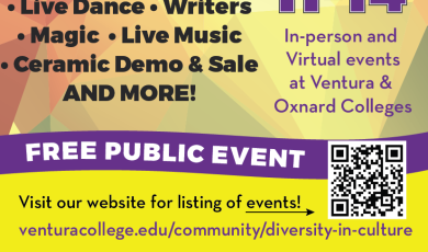 April 14 - Diversity Festival at Ventura College with on-campus and virtual events.