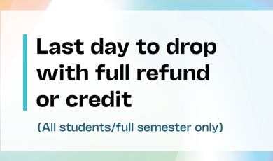 August 23, 2024 All Day Event Last day to drop with full refund or credit (All students/full semester only). Registration Featured Location Moorpark College, Oxnard College, Ventura College